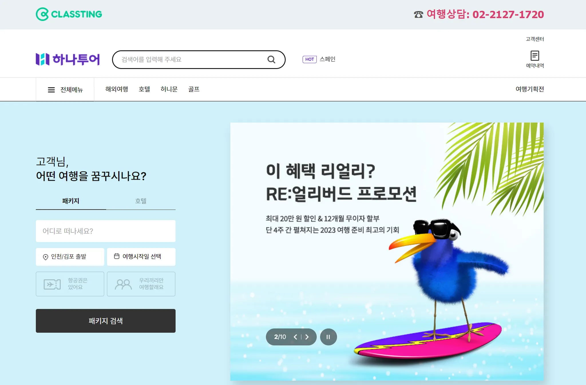 클래스팅 X 하나투어 여행 상품 특별 제휴 할인